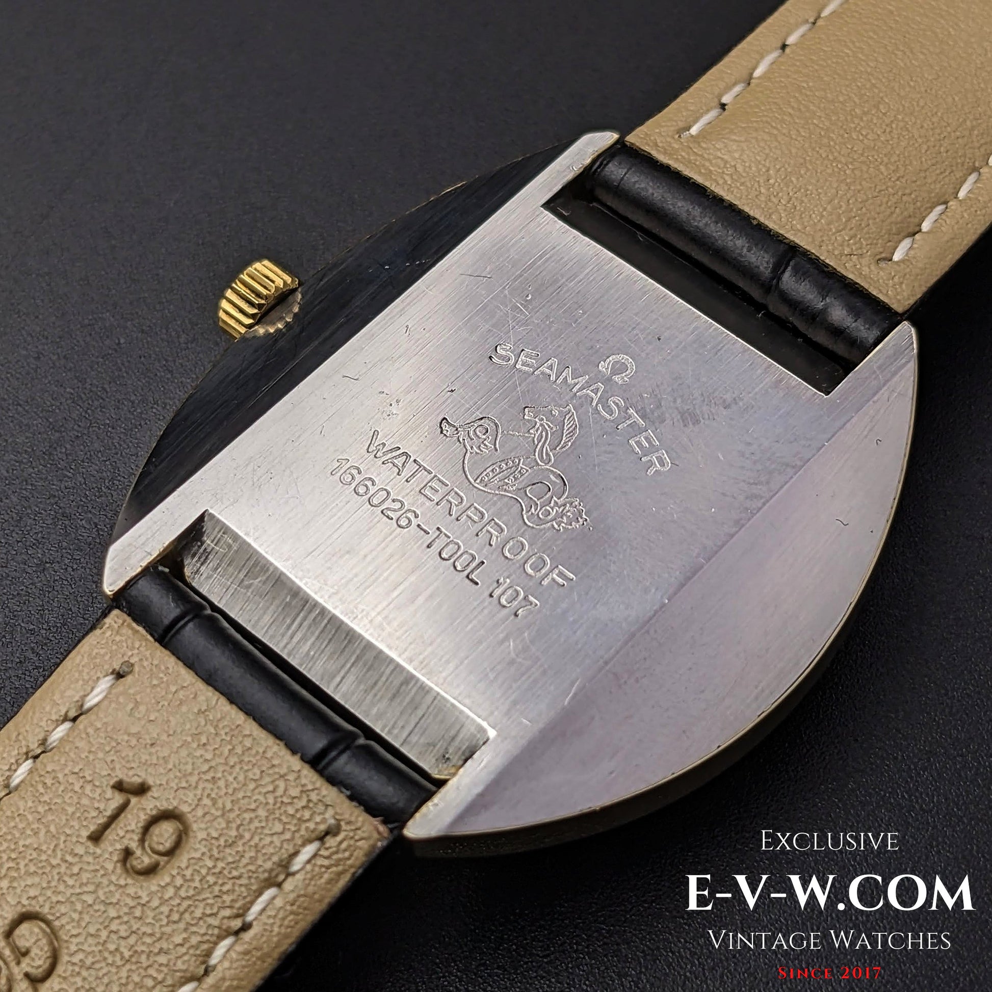 CASE: Steel case in good condition signed with "Ω" logo and the Seamaster’s Seahorse. Original Omega crown signed with "Ω" logo