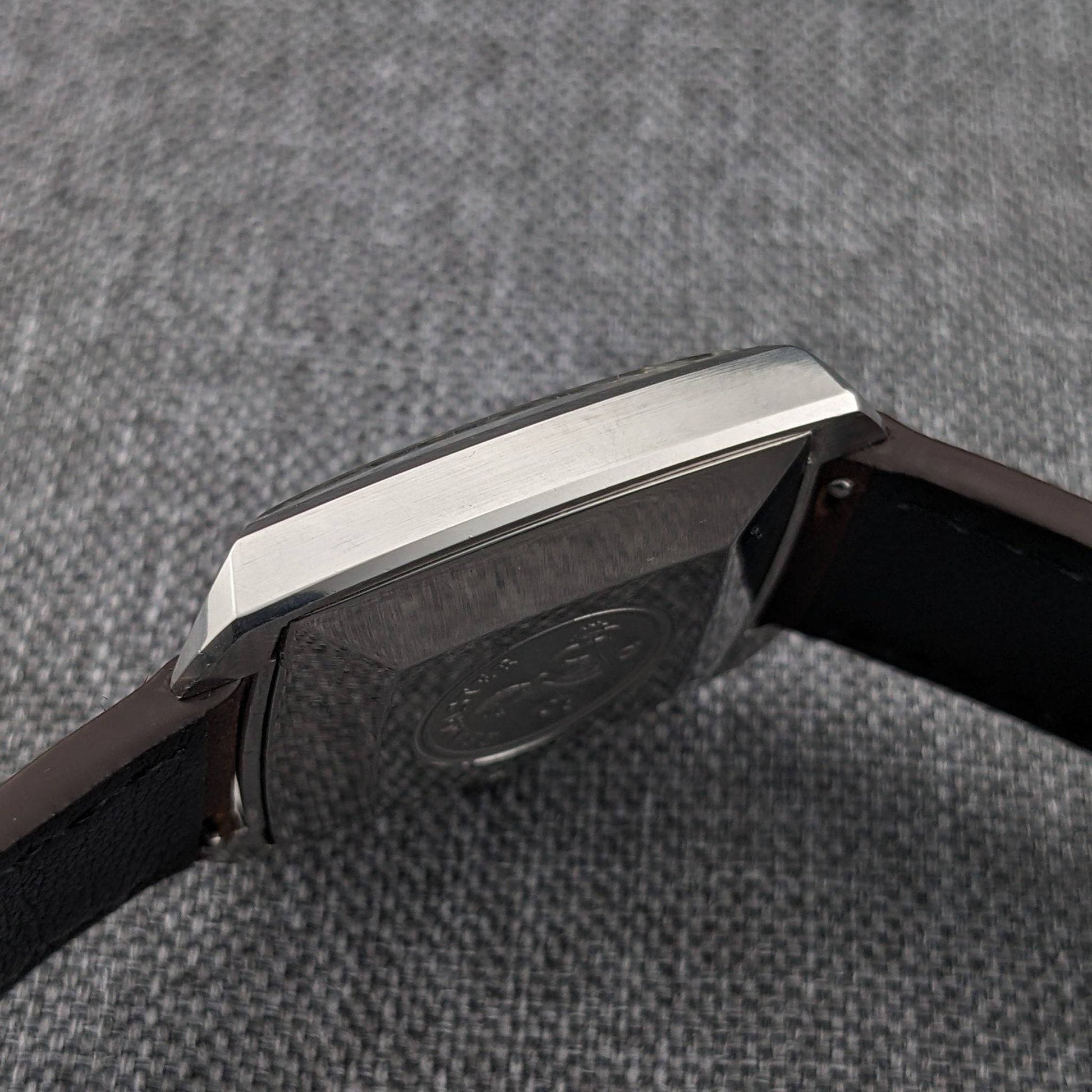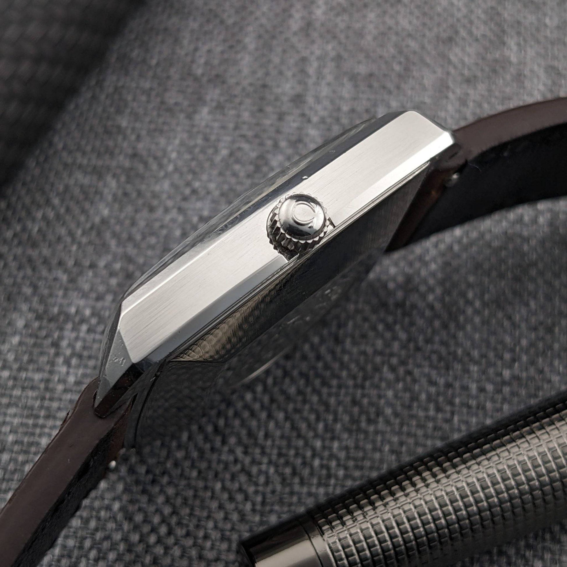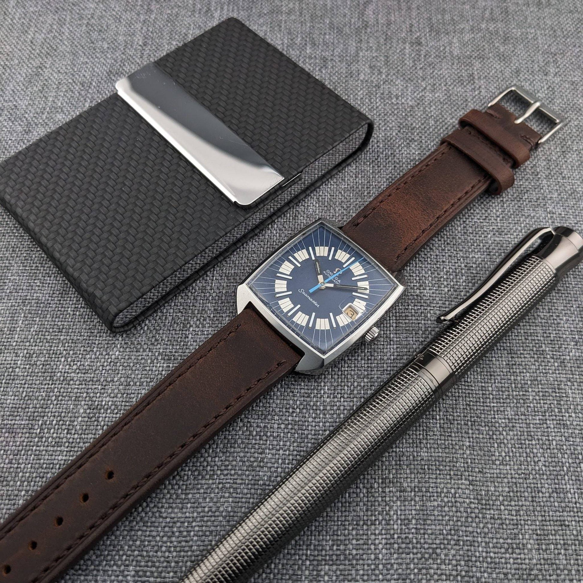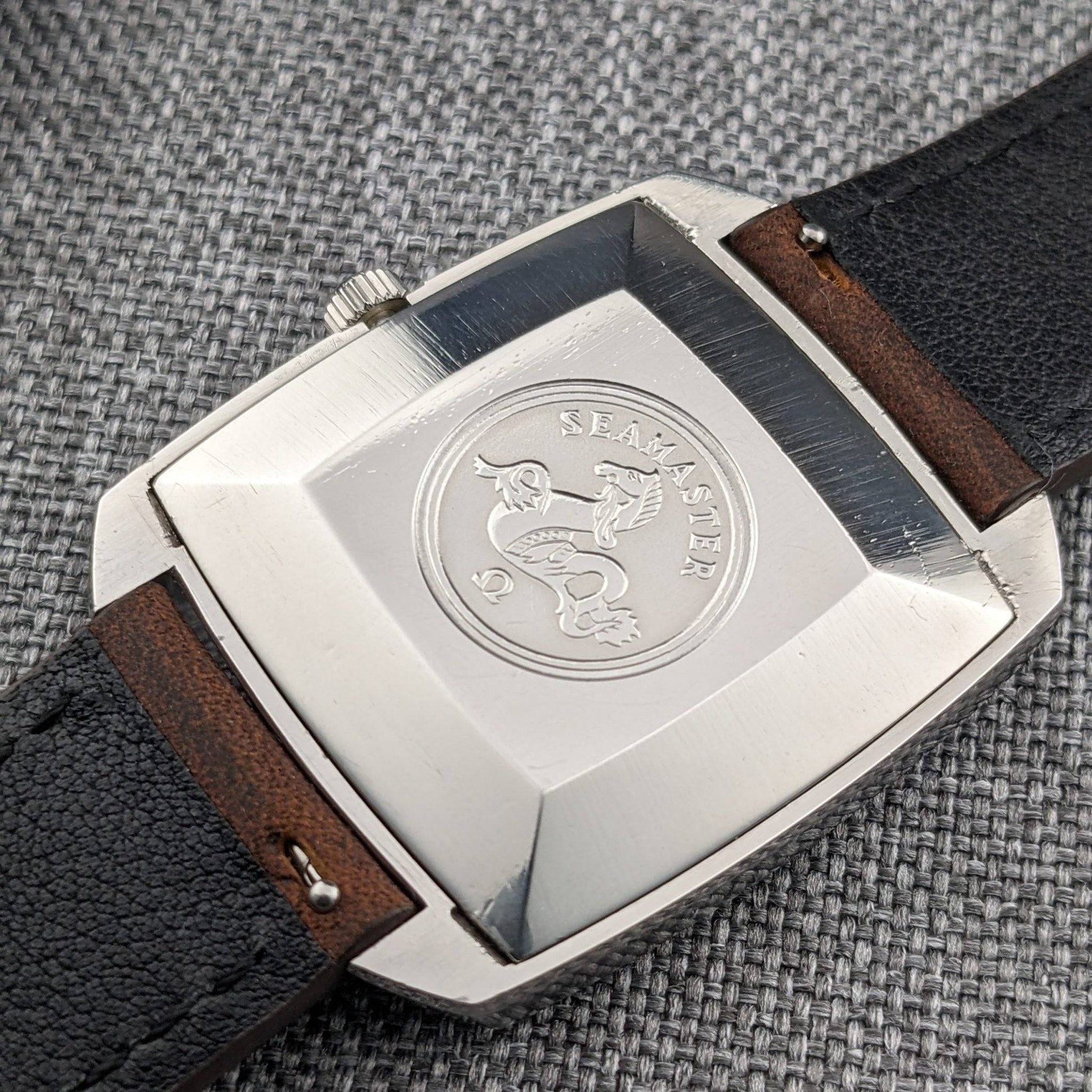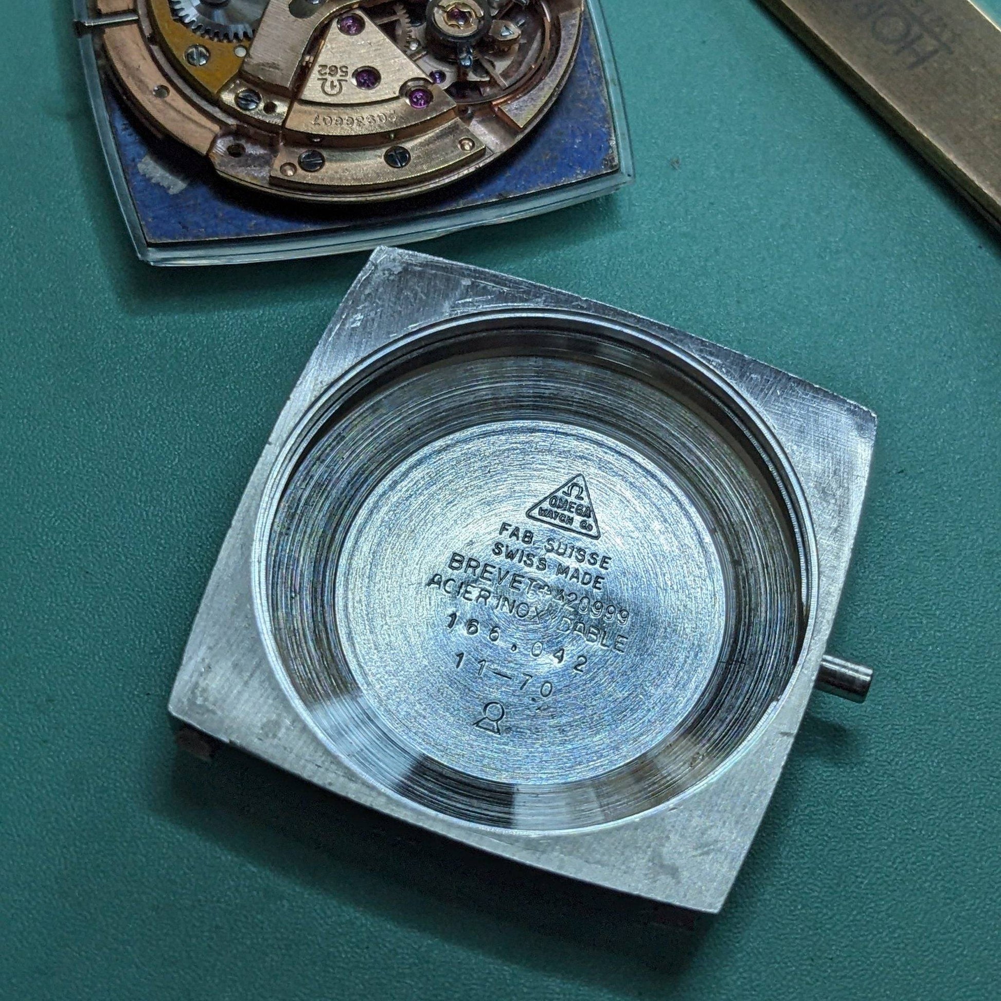 The Omega Seamaster Automatic Comressor Reference 166.042 is a compelling choice for collectors who value unique design elements. Its square tonneau style steel case, a departure from the conventional round Seamaster cases, offers a distinct geometric allure. This example stands out with its striking original blue dial, featuring white radial block markers and a framed date window at 3 o'clock. The applied Omega logo and blue sweep seconds hand add to its visual appeal. This reference is highly sought after for its design-driven dial executions, often seen in blue, burgundy, or racing styles, which set it apart from the more conservative Seamaster models. The caliber 562, a 24 jewel automatic from Omega's 550 family, is known for its technical precision and historical significance, making it a fitting engine for this late 1960s to early 1970s model. An intriguing aspect of this watch is the tension between the movement's serial number, indicating a 1963 production, and the case reference, suggesting a circa 1970 assembly, offering a fascinating narrative for vintage watch enthusiasts.